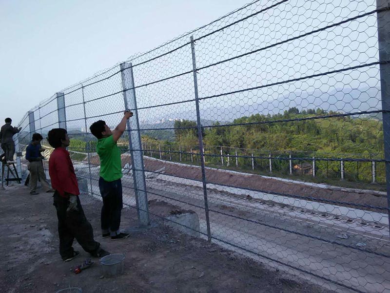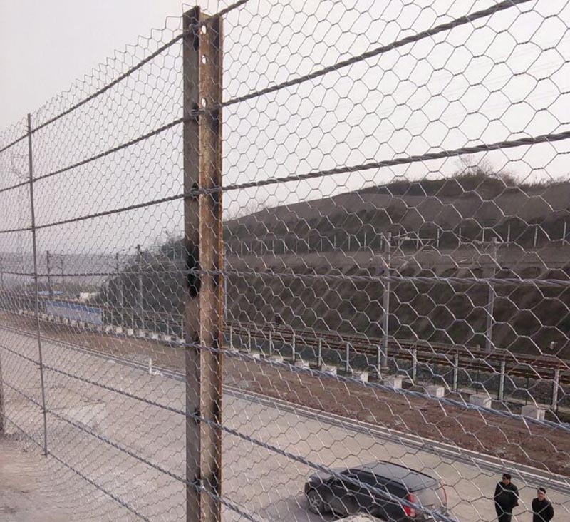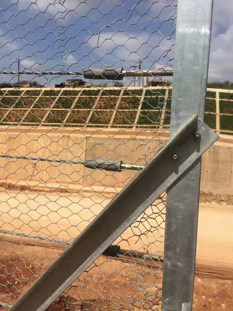 ⑴剛性防護網(wǎng)由型鋼立柱、雙絞六邊形鋼絲網(wǎng)、鋼絞線及立柱基礎組成。防護網(wǎng)立柱下設置全埋式獨立基礎。基礎采用人工垂直掏槽方式施工。
