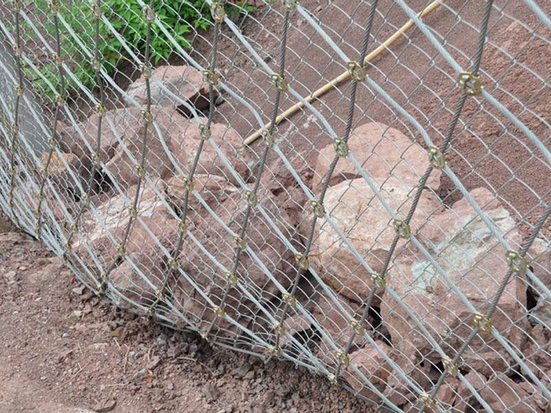 對(duì)于一些存在危險(xiǎn)巖石的區(qū)域,我們可以增加錨桿長(zhǎng)度,使縱向、橫向支撐繩通過(guò)錨桿的拉力加大對(duì)危巖的作用力,可以有效的控制危巖并加固,提高防護(hù)等級(jí)。為了是鋼絲繩網(wǎng)的預(yù)張拉更加充分,整體受力更加均勻,我們一般采用掛鉤的方式,掛鉤的方式適用于各種復(fù)雜的地形。同時(shí)我們需要保證鋼絲繩網(wǎng)在支撐繩的作用均勻受力,我們采取掛鉤的方式將鋼絲繩網(wǎng)固定在支撐繩賀茂趕上,再用縫合繩將其縫合。