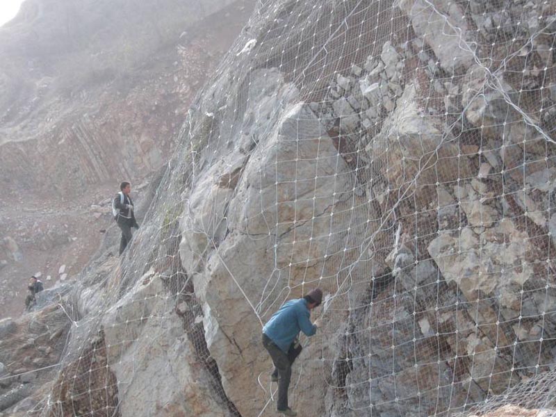 隨著安全要求的進(jìn)一步提升,我們用鋼絲繩網(wǎng)將山體包裹起來。更加直接的將一些存在安全隱患的落石扼殺在根源。