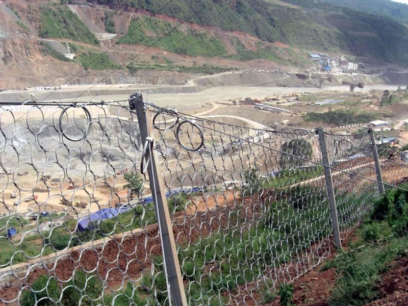 鋼繩網(wǎng)山體防落石網(wǎng)系統(tǒng)的特點在于:強度足以吸收和分散傳遞預(yù)計的落石沖擊動能,消能環(huán)的設(shè)計和采用使系統(tǒng)的抗沖擊能力得到進一步提高。與剛性攔截和砌漿擋墻相比:改變了原有施工工藝。使工期和資金得到減少。