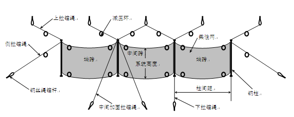 然后就可以安裝鋼絲繩網了,將鋼絲繩網通過縫合繩縫合在上下支撐繩與立柱上。然后進行最后的調試工作,關于菱形被動防護網的安裝就基本完成,有不明白的地方可以與我們的技術人員聯(lián)系,聯(lián)系電話:0318-8065688