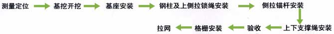 安裝被動防護網時我們需要準備好所有的零部件:立柱基座、立柱、上支撐繩、下支撐繩、螺栓、縫合繩。只有確認所有的零部件后方可安裝,否則安裝無法順利完成。