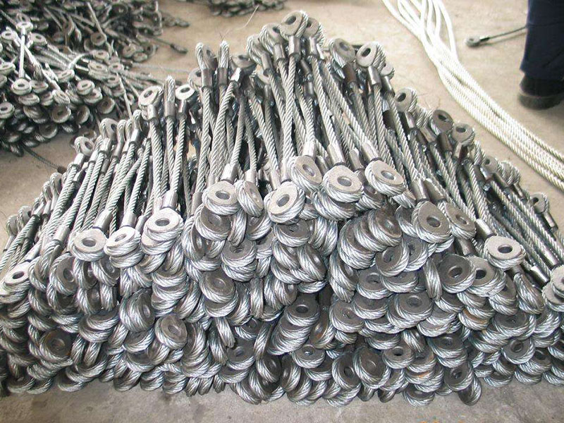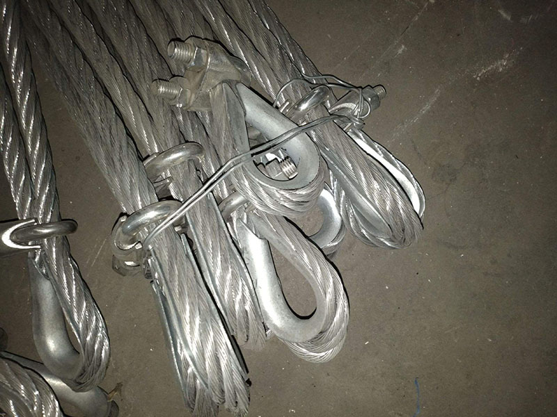 鋼絲繩錨桿生產工藝:將鋼絲繩錨桿對折圍繞在熱鍍鋅雞心環上,并用繩卡固定(注:U型繩卡的使用方法)